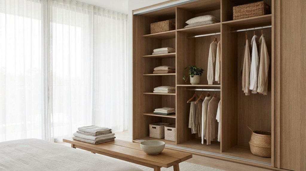Una volta deciso cosa tenere, è il momento di rimettere i capi nel guardaroba in modo funzionale e duraturo. L’obiettivo è creare un sistema di organizzazione casa che sia facile da mantenere.