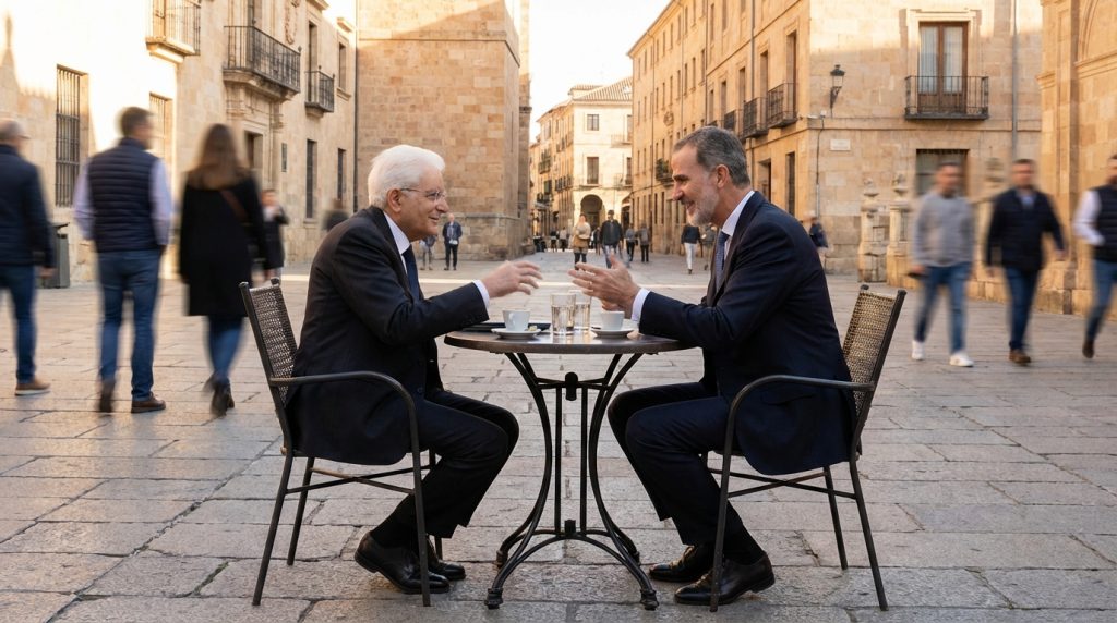 Un caffè nel centro storico di Salamanca, tra il Presidente della Repubblica Sergio Mattarella e Sua Maestà il Re Felipe VI di Spagna, può sembrare a prima vista un semplice momento di cortesia istituzionale, una parentesi leggera nelle agende fitte dei Capi di Stato. Tuttavia, in un’epoca di crescente complessità geopolitica e di sfide che trascendono i confini nazionali, ogni gesto, ogni incontro, ogni immagine veicola un messaggio molto più profondo e strategico. Questa analisi editoriale si propone di andare oltre la superficie della notizia, decifrando il significato intrinseco di questo incontro apparentemente informale e le sue ramificazioni per l’Italia, la Spagna e l’intero scacchiere euro-mediterraneo.