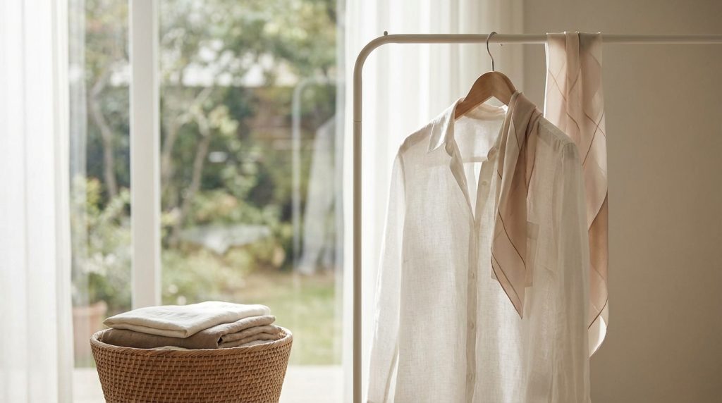 - Camicie e Bluse: Appendi su grucce sagomate (non quelle metalliche sottili che lasciano segni) e abbottona il colletto e i primi bottoni per mantenere la forma. Questo riduce notevolmente la necessità di stiratura.