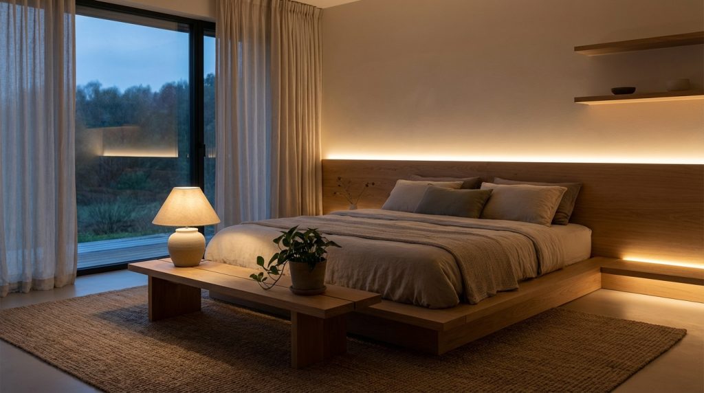 - Temperamento: Luce molto calda (2200K-2500K) e soffusa, spesso con giochi di luce e ombra creati dalle trame dei materiali.