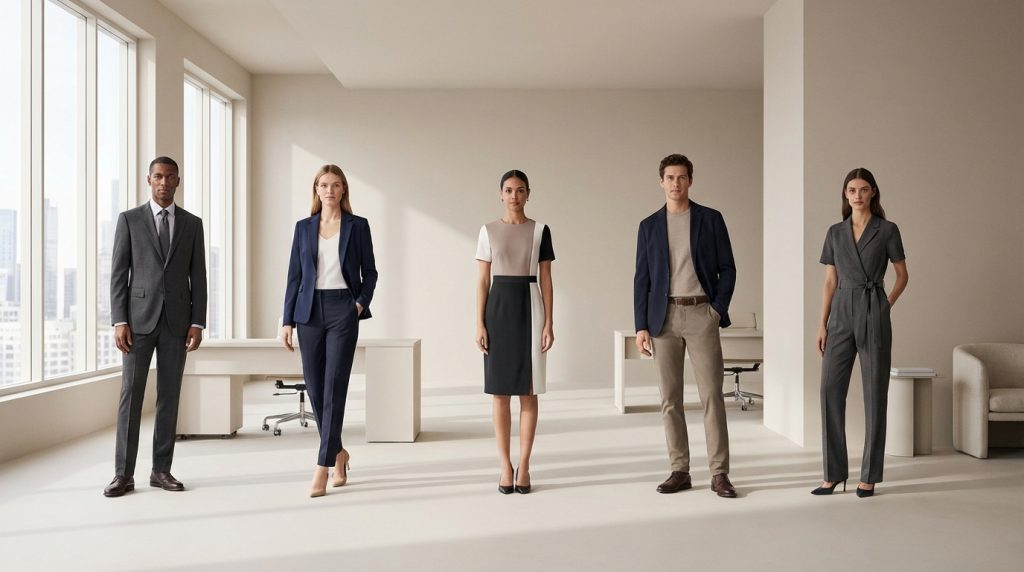 Anche i colori e i tessuti giocano un ruolo fondamentale. Colori neutri come il blu navy, il grigio, il nero e il bianco sono classici e trasmettono serietà e autorità. Tessuti come la lana, il cotone di alta qualità, la seta e il lino (nelle stagioni appropriate) comunicano eleganza e professionalità. Evitare tessuti troppo trasparenti, lucidi o eccessivamente casual è una buona regola generale per la maggior parte degli ambienti lavorativi. Ogni scelta contribuisce a creare un outfit professionale coerente e d’impatto.